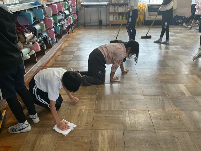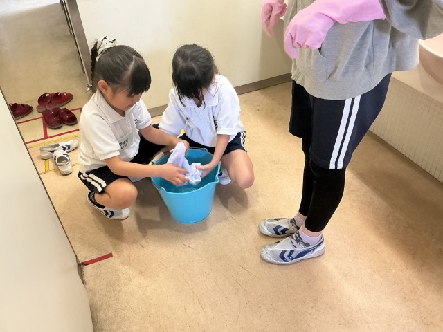 日々の清掃活動を通して、子どもたちは自分たちの学校を大切にする気持ちや、友達と協力する姿勢を育んでいます。6年生は1年生の清掃活動のお手伝いを一生懸命に行っています。