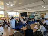 6年生が、前林中学校入学説明会に参加しました。級友とともに徒歩で前林中学校まで移...