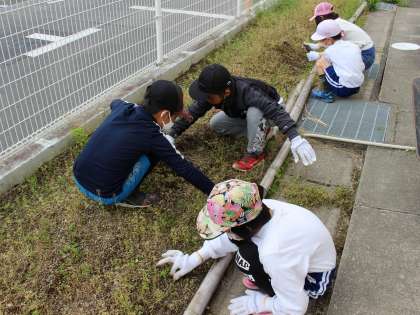 学年園で,今年もケナフとサツマイモを栽培する予定です。その準備として草取りをしました。張り切って作業をしてくれたおかげで,あっという間に畑がきれいになりました。