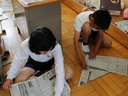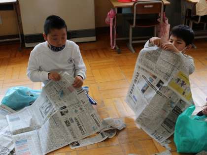 新聞紙で遊ぼう(特別支援学級 5月11日)