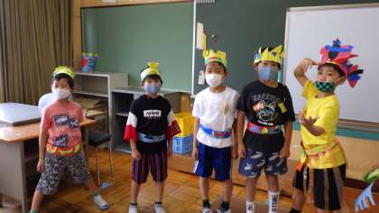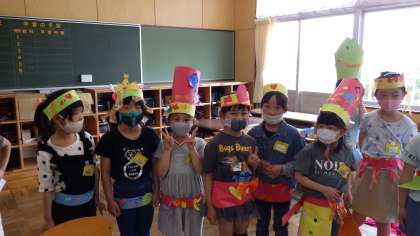 図工の授業で「わっかでへんしん」に取り組みました。最初の頭のわっか作りは、悪戦苦闘しましたが、一度こつを覚えたら、ベルトのわっかはスムーズに作れました。さすが2年生ですね。
