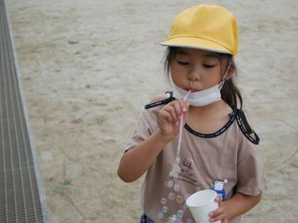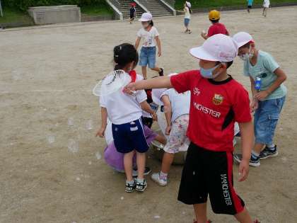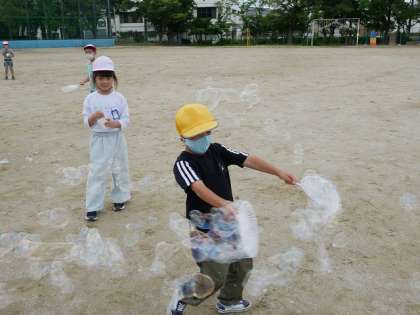 空中を飛び交うたくさんのシャボン玉に,歓声があがりました。