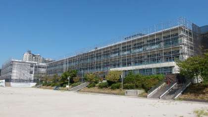 各教室の照明機器も取り換えが完了しました。また全棟(体育館も含む)の足場も組み終わりました。今後は外壁を剥がしたり,塗装をしたりしていきます。2棟西トイレは中が見られないため様子は分かりませんが,解体作業は終わっていると聞いています。