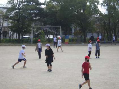 10月8日(金)に,6年生全員で学年レクレーションを行いました。何をしたかというと…「鬼ごっこ」です!!晴れ渡る青空の下を,一生懸命に走り回る子どもたちの姿は,見ていてとても清々しいものでした。若い二人の先生も必死で子どもたちを追いかけていました。