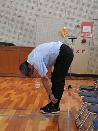 良い姿勢に必要なのは「筋力」「柔軟性」「バランス」ということで、早速全員でチェックです。お子さんが参加された方、資料をもとにご家庭でもぜひ挑戦してみてください。