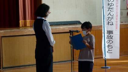 梅坪小学校で、交通事故が起きないのは、中山さん、地域の方々のおかげです。私も班長として、あいさつの大切さを1〜5年生に伝えていこうと思います。
