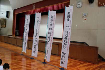 10月12日に高学年、15日に低学年が交通安全集会を行いました。交通安全標語入賞者の紹介後、交通安全指導員の中山さんのお話を聞きました。本年度、梅坪小学校は交通事故0が続いています。このまま続いていくよう、みんなで交通ルールを守って登下校していきましょう。