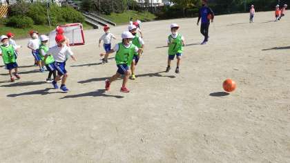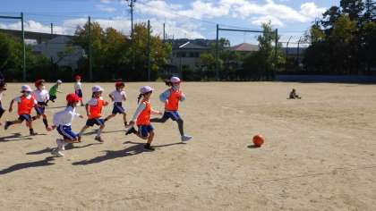 サッカーをやったことがある子も初めての子も,ボールを夢中で追いかけ,走り回っていました。ある子が,「サッカーはこわいと思っていたけれど,やってみたら楽しかった!」と笑顔で話していました。それぞれの子が自分なりの楽しみ方で取り組めたことに,とても嬉しくなりました。