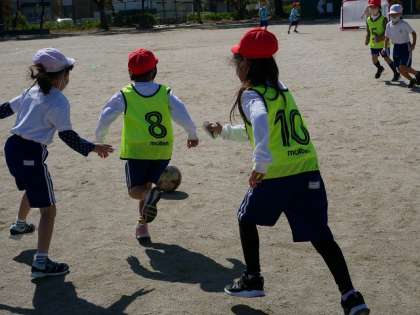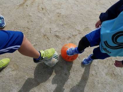 この日を心待ちにしていた子どもたちは,キラキラした目でコーチの方々の話を聞きました。練習や試合が始まると,一生懸命ボールを追いかけました。