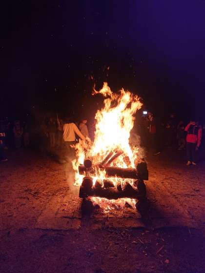 その後に行われたキャンプファイヤーでは各学級の出し物で大きく盛り上がり、最後には学年の団結を誓いました。思い出に残る素晴らしい行事にできました。