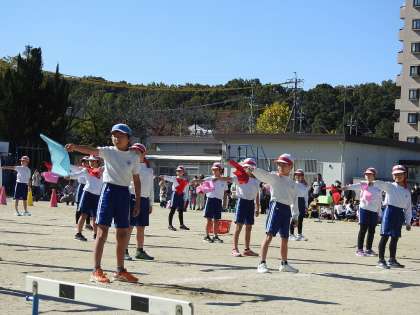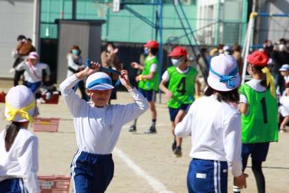 スポーツフェスティバルで4年生は表現運動でダンスとフラッグ、障害物リレーをしました。約1か月の間、4年生全員で動きをそろえようと練習した表現運動では、心を一つにして見事な演技を披露することができました。障害物リレーでもクラスで協力して、たすきをつなげることができました。