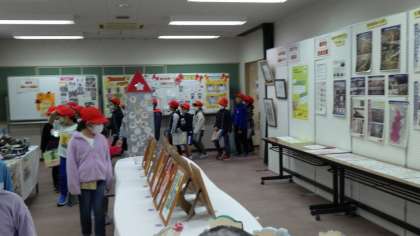 梅坪台交流館では、交流館ふれあいまつりが行われており、素敵な展示物を見せていただきました。また普段見られない防災倉庫の鍵も開けていただき、災害時に役立つ備蓄品を見て、交流館が自分たちの生活に密接につながっていることが理解できたようです。