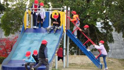交流館の後は、下町公園と京町公園に行きました。公園遊びを堪能しながら、それぞれの公園のよさを感じ取るとことができました。