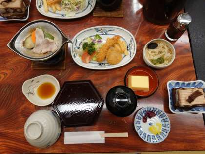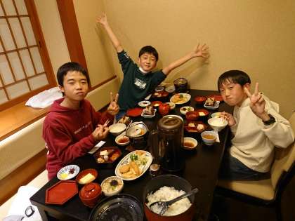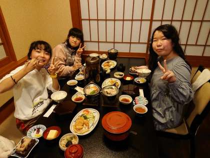 楽しみにしていた夕食の時間です。テーブルには食べ切れそうもないくらいの料理が並んでいます。
