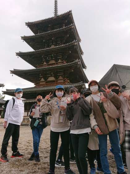 最後の見学、法隆寺を終えました。コロナの影響もあり、法隆寺の見学者はまばらで、ゆとりをもって見学もできました。