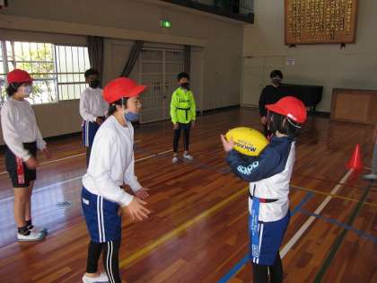 しかし、ラグビーボールの形は面白いです。いつものボールとは違い、落としたらどう弾むのか予測がつきません。そんなボールも上手く投げれば、相手も取りやすくなります。何回もパスを回しているうちに、どんな投げ方がよいのか分かってきたようです。もっと練習して、上手くなりたいですね。