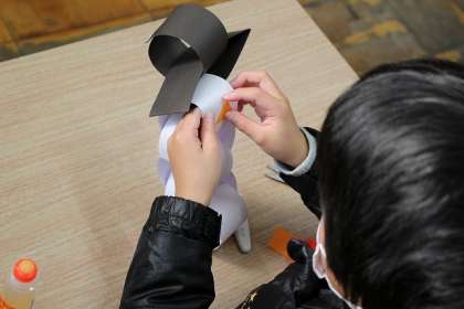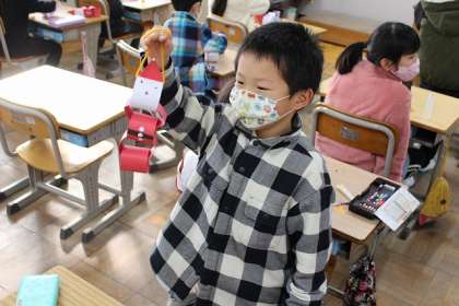 先週末から今週にかけて,1年生は「クリスマスの飾り作り」を行いました。見本のサンタさんと雪だるまを見せた途端、目を輝かせる子どもたち。大喜びで取りかかります。作りながら,クリスマスの歌を口ずさむ子もいました。