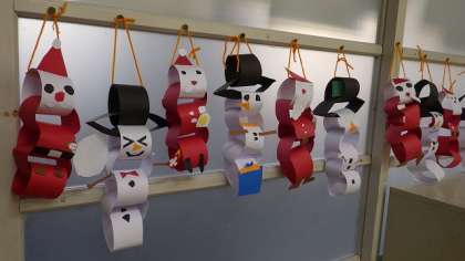 表情が豊かなサンタさんと雪だるまたち。教室に飾ると、口々に「かわいい!」「サンタさんにすっごい見られてる!」と言って、嬉しそうに笑っていました。