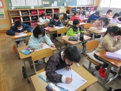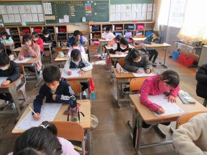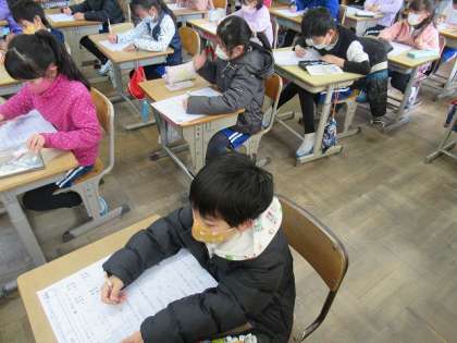 冬休みも終わり、2年生も3か月となりました。1月18、19日の学力テストに向けて、国語と算数のまとめテストを行いました。全員が最後まで集中して取り組むことができました。学習の振り返りをして、素敵な3年生になれるように準備をしましょう。