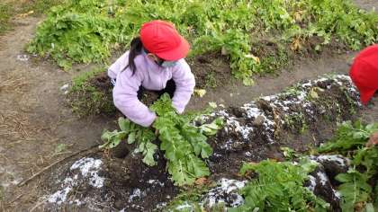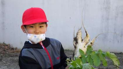 子どもたちは,水やりをしたり,雑草を抜いたり,成長に合わせて肥料を与えたりして,大切に育ててきました。どんな大根が出てくるのか,ドキドキしながらの収穫作業でしたが,大きな大根、変な形の大根、ちょっと小さい大根にも満足そうな子どもたちの笑顔を見ることができました。