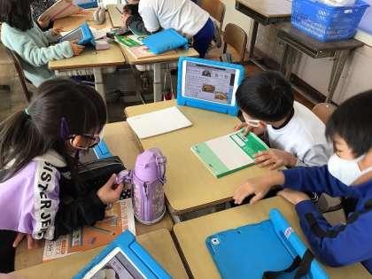 国語科「外国についてしょうかいしよう」で,興味のある国について調べ,資料にまとめて発表しました。その国の食べ物や名所について調べた児童が多かったです。日本とは違う文化を知り,「すごい!」「いいなあ!」とつぶやきながら,友だちの発表を聞いていました。中には,クイズを作って発表した児童もいました。教室に笑顔と笑い声が溢れ,楽しい時間になりました。