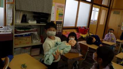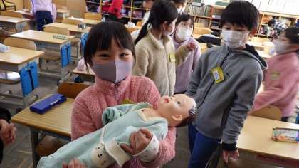 また実物大の赤ちゃん人形を抱っこする体験もしました。3000gの重さに「こんなに重たかったんだね。」「こんなに重い赤ちゃんがお腹にいたなんてお母さんたいへん。」などと感想を話していました。