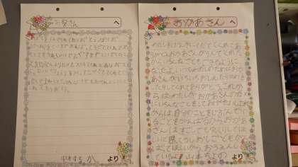 最後に、自分のためにすごくがんばってくださったお家の方に手紙をかきました。すてきな手紙を書き終えて子供たちは満足そうでした。