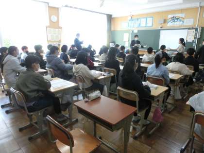 卒業を間近に控えた6年生の教室に,中学校の先生方が授業をしに来てくださいました。初めは緊張気味だった子どもたちも,先生たちの話術に引き込まれ,笑顔で授業を受けていました。