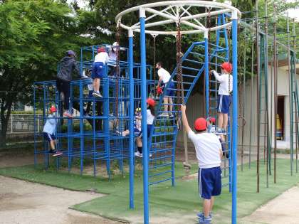 草取りの後は外遊びをしました。久しぶりに会った友達と仲良く遊んでいました。
