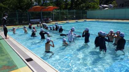 2年ぶりに再開された学校でのプールでした。コロナ感染や熱中症に気をつけながら、ルールを守って楽しくプールに入ることができました。子どもたちのはじける笑顔がとても印象的でした。