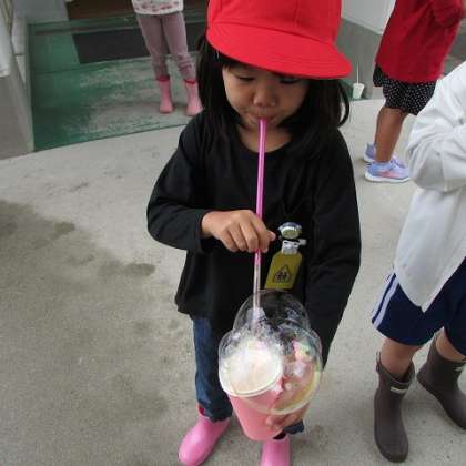 3時間目はあいにくの天気でしたが、生活科の「しゃぼん玉あそび」をしました。楽しそうに活動する姿がみられました。「次はこんなしゃぼん玉を作ってみたい」という思いをもつこともできました。