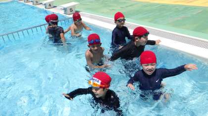 1年生は,今週でプールの授業を終える予定です。子どもたちは,最後のプールの授業を楽しんでいます。「もぐれるようになったよ」「すこしおよげたよ」。嬉しそうに,自分たちの成長を確かめていました。