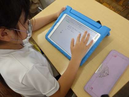 7月1日から導入されたキュビナを使い始めました。まだまだ不慣れですが,子どもたちは興味津々で積極的に取り組んでいました。AI搭載ということで,今後の学習がより充実するように活用していきたいと思います。