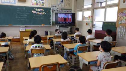 夏休み前全校朝会に,オンラインで参加しました。夏休みに気をつけることなどについて,話を聞きました。事故や健康に気をつけて,良い思い出をたくさん作ってください。8月22日(月)に,オンラインでみんなの笑顔を見れるのを楽しみにしています。