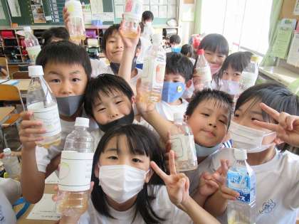 6月に作った梅ジュースを本日持ち帰りました。7月に試飲をし、「お家の人に飲んでほしい」という声がたくさんありました。どんな感想が聞けるかとても楽しみです。ペットボトルに貼るラベルを手作りしました。そちらも是非ご覧ください。