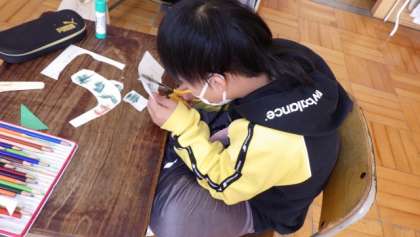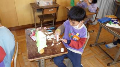 クリスマスの音楽が流れると、中には歌を口ずさんだり、体が自然と動いたりする子が出てきます。それぞれが楽しいクリスマスを思い浮かべながら、夢中になって作ることできました。
