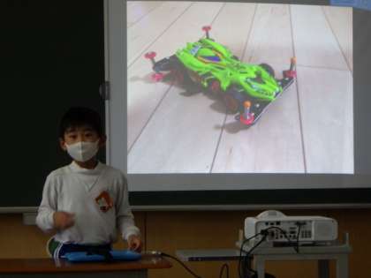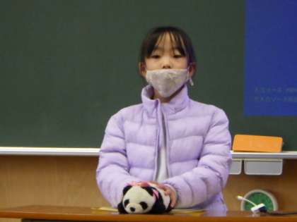 国語科「たからものをしょうかいしよう」の学習で、自分の宝物についてスピーチしました。宝物の写真を撮ってきて映し出したり、実物を持ってきて紹介したり、工夫して発表することできました。メモを見ず、聞いている人を意識してスピーチする子もおり、とても堂々として立派でした。