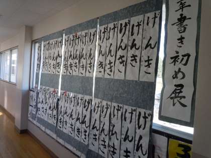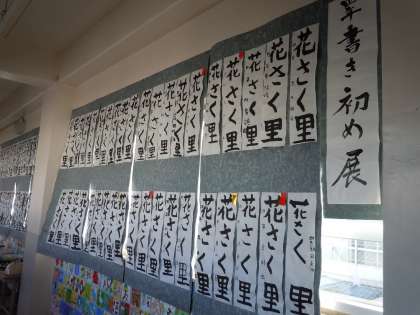3年生から毛筆となり、習字が始まります。ひらがなは字のバランスがとりづらく、子どもたちも苦労していました。力強い「げんき」ときれいな「花さく里」です。
