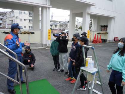 今日のクラブ活動では、少年消防クラブが消防署より講師の先生を招き、体験学習を行いました。