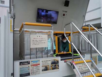 行った学習は、火事を想定した煙道訓練と地震を疑似体験する防サイ君です。防サイ君は過去に発生した大地震を再現することができるので、子どもたちはさまざまな地震を体験しました。