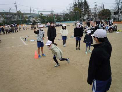 1年生でもこわがらずに縄の中に入ることができました。高学年は前の人と間を開けず、連続で跳び続けることができました。チームの協力やお互いを思いやる気持ちを育てることができました。