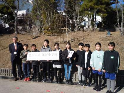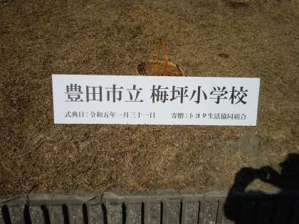 このたびトヨタ生協様からしだれ梅を贈呈していただきました。市内全小学校に木や花を寄付をする活動を続けており、今年は梅坪小学校に声がかかりました。梅坪小学校はシンボルとも言える梅の木を植樹してもらいました。約2mはある高い木で、すでにつぼみもたくさんついています。あと1か月もするといっぱいの花を咲かせそうな様子です。