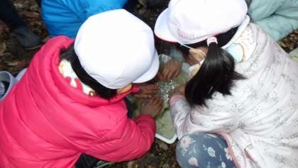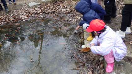 さらに、見つけにくいカマキリの卵をみんなで見つけたり、池の中にあるタピオカみたいなものは、実はカエルの卵だったり。あっという間に時間が過ぎて、自然の中で遊ぶ楽しさを満喫できました。やっぱり外遊びは楽しいね。