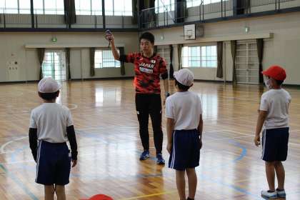 本日2時間目・3時間目に走り方教室が開かれました。「かいちゃん先生」こと東京オリンピック日本代表として活躍された川端魁人選手をお招きして、正しいフォームや走り方を教えていただきました。楽しく一生懸命走る子どもたちの姿がたくさん見られました。