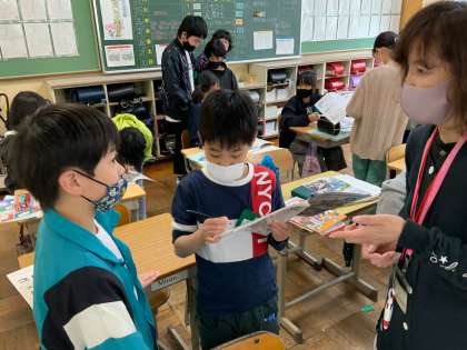 英語の授業では、英語での会話に慣れ親しむために、Small Talk に挑戦しています。今回は、お互いの誕生日と欲しいプレゼントについて質問しました。子どもたちは、ジェスチャーやアイコンタクトを意識して、伝え方を工夫していました。"Nice!" や "Wow!" と元気よくリアクションし、笑顔で会話することができました。