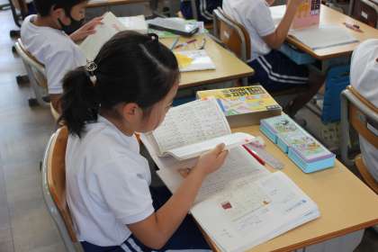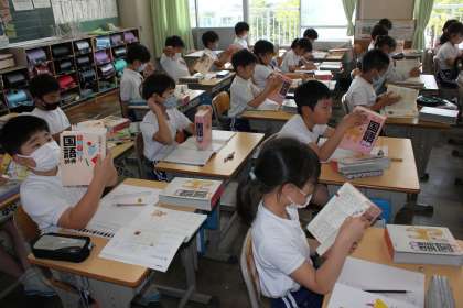 国語辞典の使い方について学習しました。「ふた」と「ぶた」のどちらが先に載っているかなど実際に調べました。
