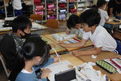 インゲン豆の発芽条件の実験結果についてまとめました。日陰に置いても長い芽が育っていることに驚いていました。グループで気付いたことを話し合っていました。