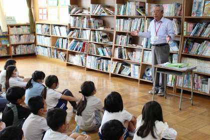 地域共同本部の杉浦さんをお招きして、梅についてお話をしていただきました。子どもたちは「梅坪」という地名の由来や梅の生産地、梅が育つ環境など新しいことをたくさん知ることができました。これから梅の収穫をします。お子さんから梅の話を聞いてみてください。