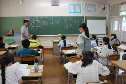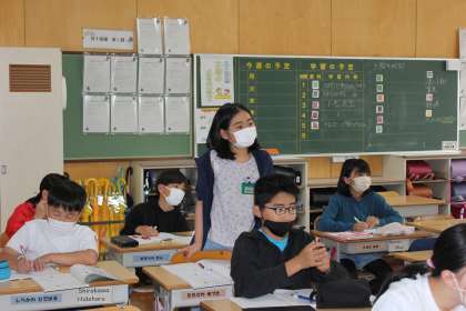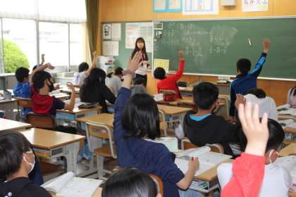 少人数で授業を展開しています。既習の内容を使い、分数×分数の計算の仕方を考え、問題を解きました。