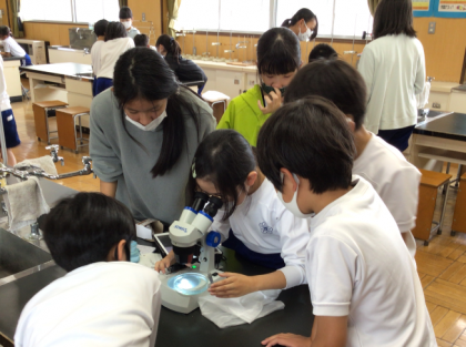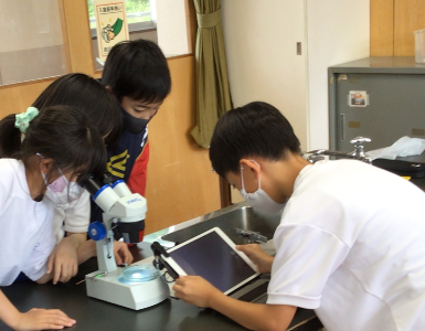 5時間目に理科の授業で双眼実体顕微鏡を使ったメダカの卵の観察をしました。タブレットで写真撮影をし、細かく観察記録を取ることができました。